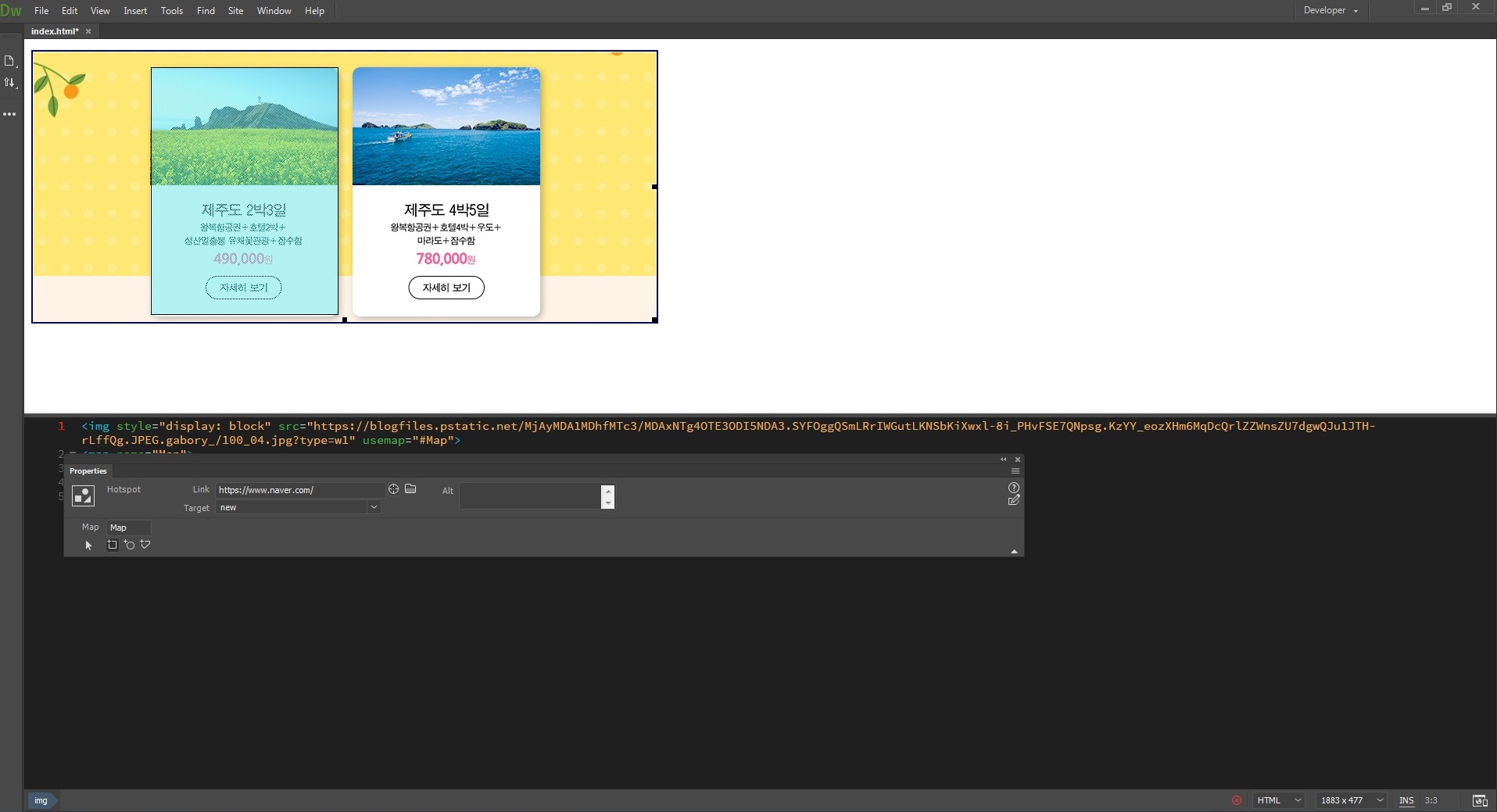 3.드림위버로 이미지맵을 만들기