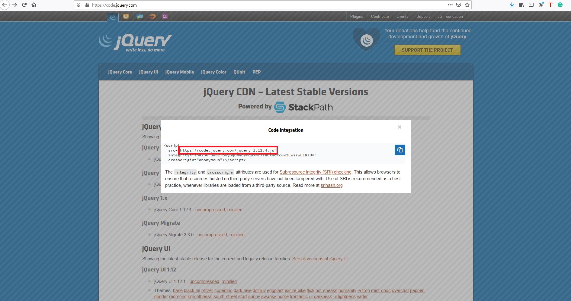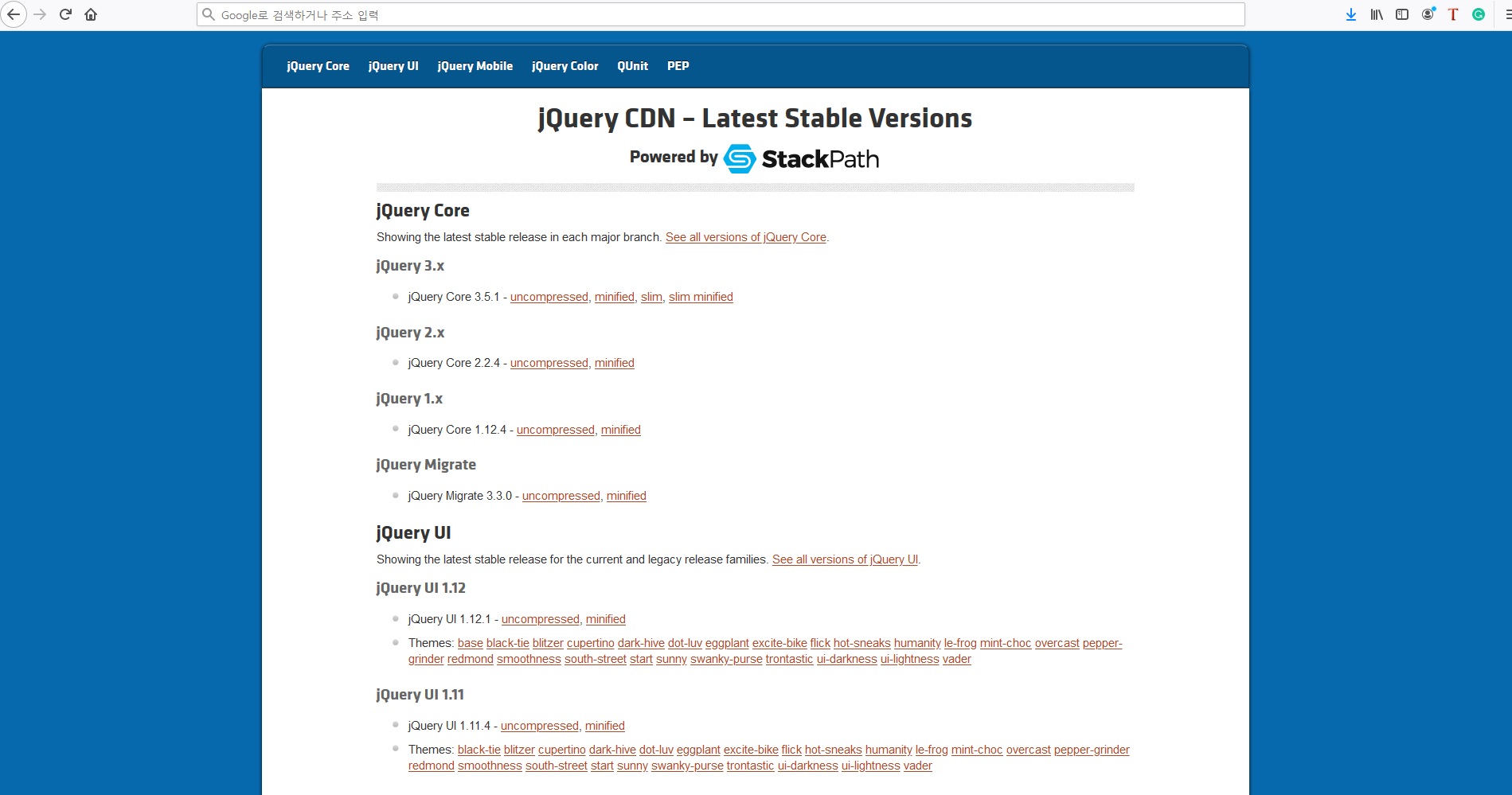 (가장 안정적인 버전은 jquery-1.12.4 이라고 한다.)