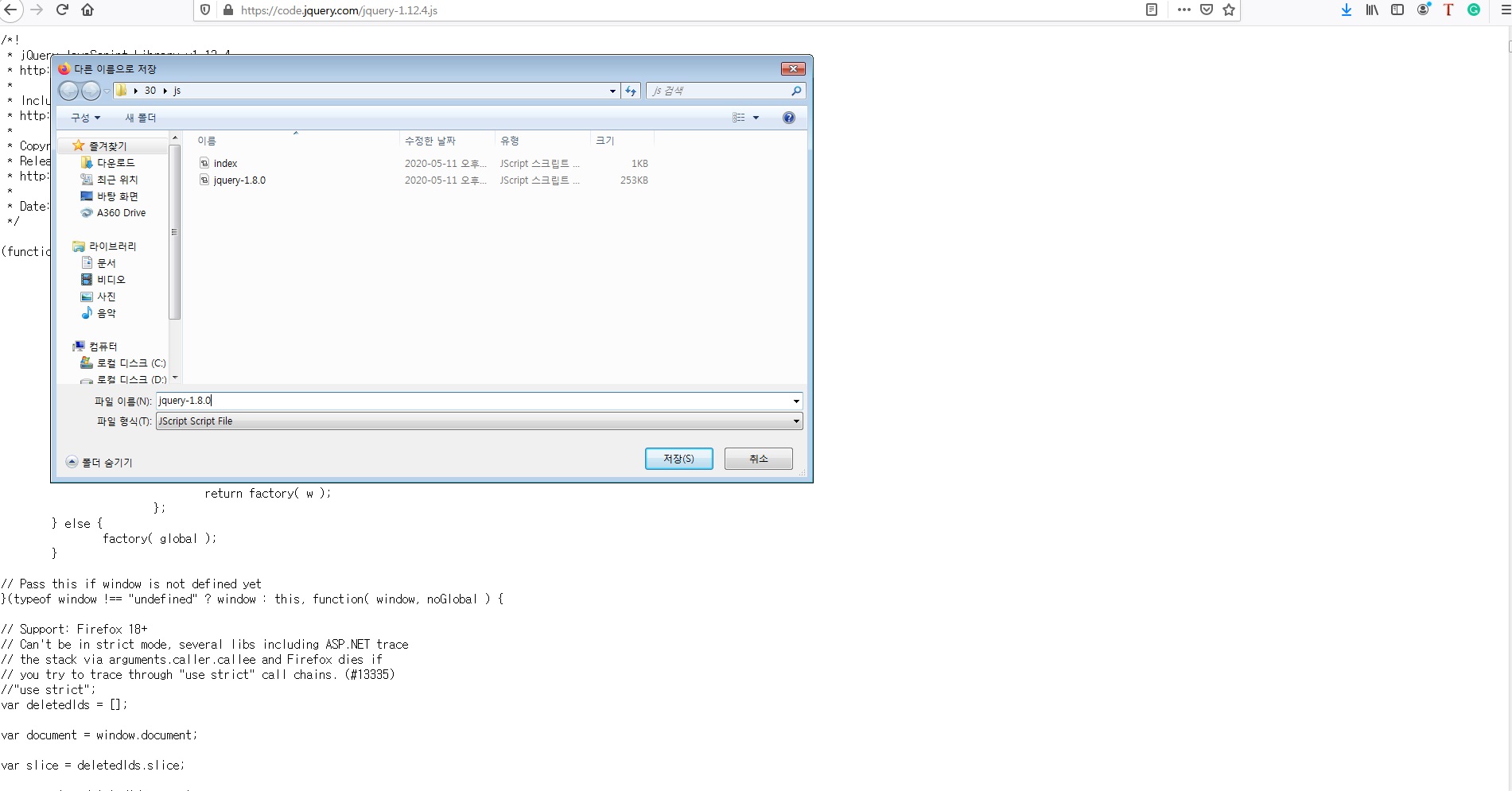 제이쿼리를 직접 다운받아 연결하는 방법(사이트가 무거워짐)